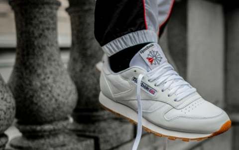 White Reebok trainer on foot
