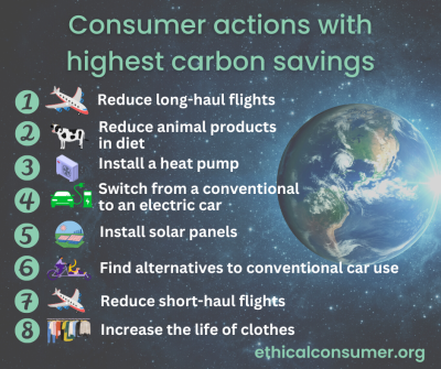 While governments and companies must lead the way in taking systemic action, it’s not surprising that many of us are also looking to reduce our own carbon footprints, especially if governments are not acting fast enough. Ethical Consumer’s recent Climate Gap report looked into the most meaningful actions we can take to help reach international climate targets.